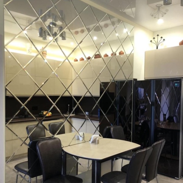 Использована зеркальная квадратная плитка с фацетом.
